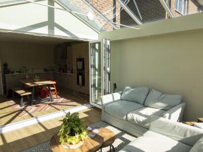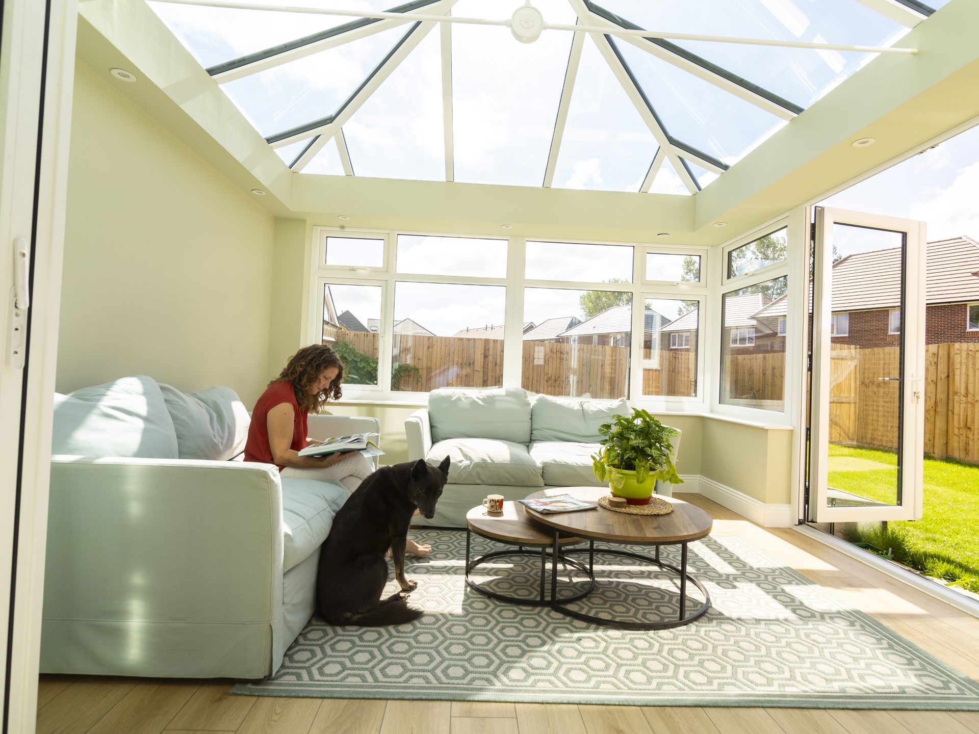 The hup! glass roof was chosen to flood the conservatory and adjoining kitchen with natural light and features high performance glass. This, coupled with the highly insulated hup! walls has ensured that the interior of the conservatory remains a comfortable temperature, no matter how hot or cold it is outdoors. As the conservatory is East facing, Amanda chose glass for the roof that also has a tinted finish to reduce glare from the sun.