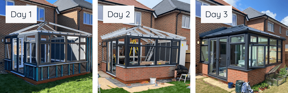 She chose to add a hup! conservatory onto her home featuring a glass roof, dwarf walls and French doors to link to the garden. Externally the conservatory walls are finished in hup! brick mesh which is a fantastic match for the brick of the property, and the windows, doors and roof are anthracite grey – creating a conservatory that looks like a real part of the home with modern good looks.